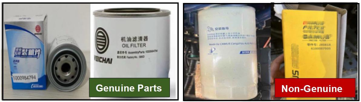 Nuestro equipo técnico acudió de inmediato y realizó una inspección minuciosa. La causa fue sorprendente: el operador había utilizado un filtro de aceite no original, comprado en el mercado local. Dicho filtro no logró retener las impurezas, provocando daños graves en el motor.
